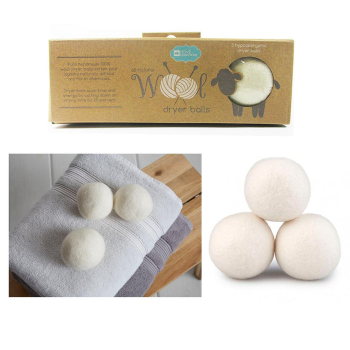 3 Pc Wool Dryer Balls Laundry Natural Hypoallergenic Reusable Fabric Softener