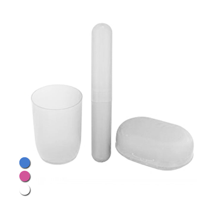 3Pc Portable Bathroom Travel Set Cup Soap Dish Toothbrush Personal Organizer Available In Assorted Colors New !!