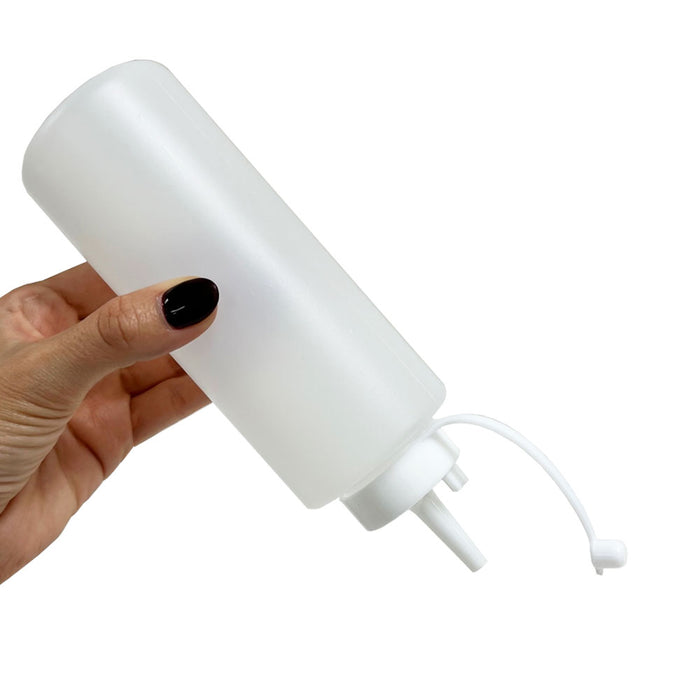 This clear plastic squeeze bottle provides excellent product recognition, making it ideal for use at prep and plating areas, garnish stations, or self-serve condiment centers.
