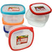 • Large square food containers with lids.