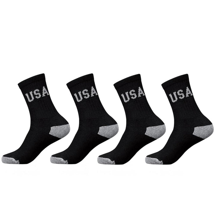 4 Pairs Mens USA Crew Socks Cushioned Black Sport Dress Hiking Camp 9-11 Cotton