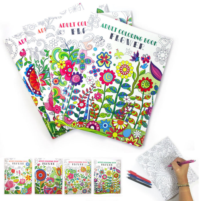 4 Pc Adult Coloring Books Creative Floral Painting Stress Relief Book Activity