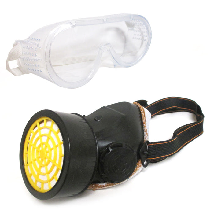 4 Pc Cartridge Respirator Mask Goggle Kit Gas Safety Chemical Spray Dust Mask
