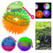 A These flashing spiky squeaky balls are rubbery, squeezable, bouncy, and light up.