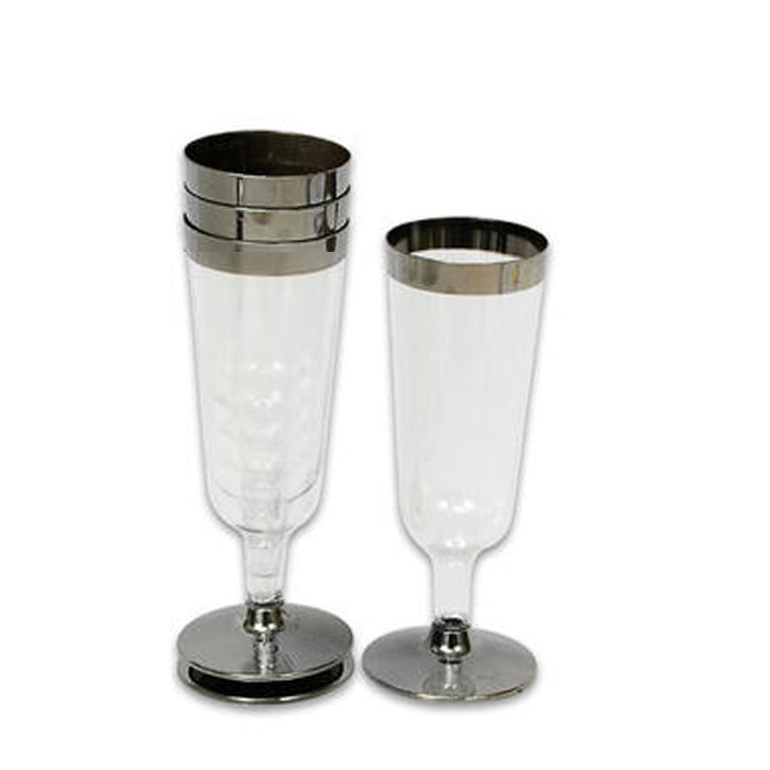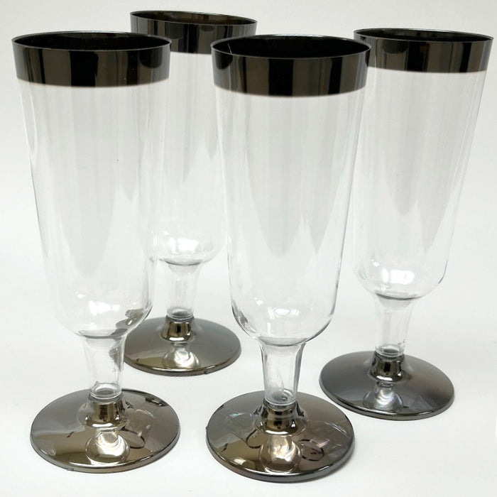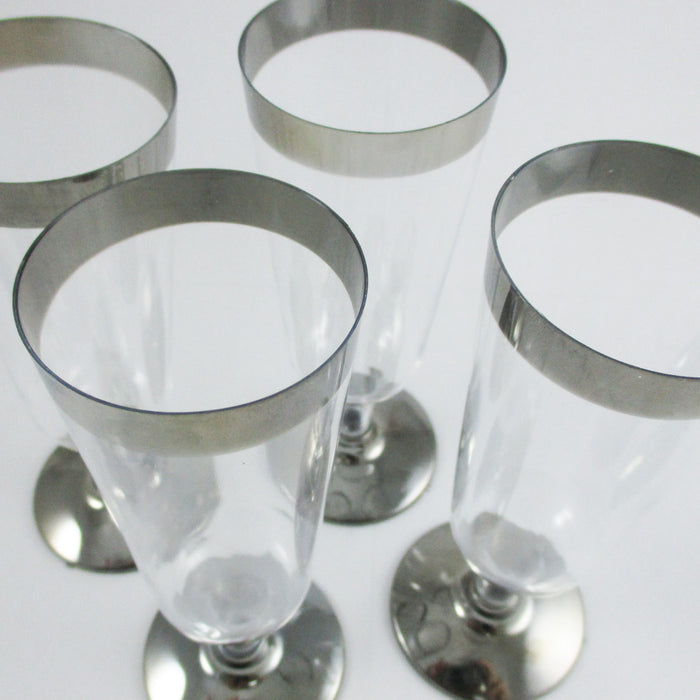 Reflections 4 piece rigid plastic champagne glass with silver base and trim.