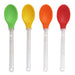 Heat resistant. Available colors: Red, Yellow, Orange and Green. Listing is for 4 spoons. You will be receiving 1 of each color.