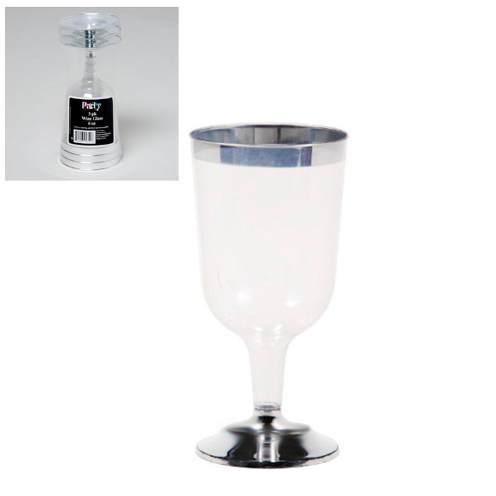 48 Pc Bulk Disposable Plastic Champagne Flutes Wedding Wine Cups Silver Rim Base