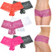 4 Pc Women's Sexy Lace Crotchless Cheeky Boxer Boy Short Panties Underwear Lingerie Open Assorted Colors
