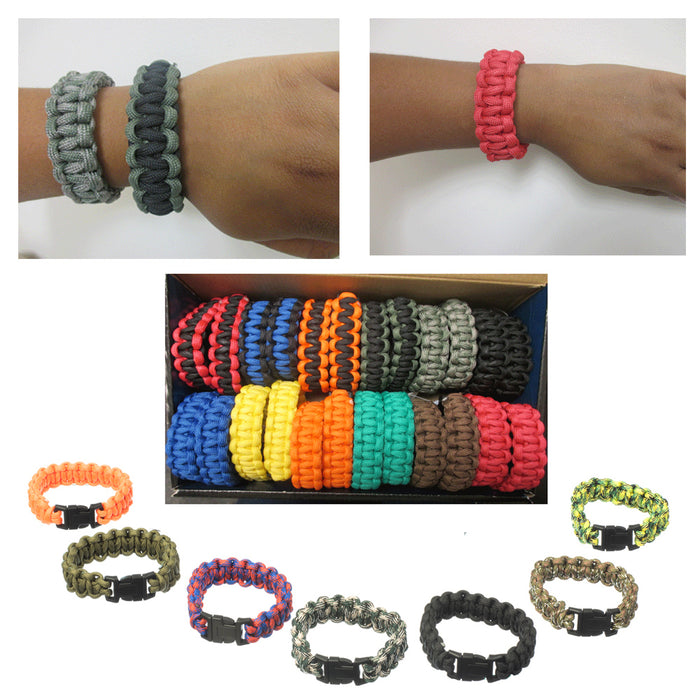 5 Paracord Bracelets Cord Whistle Buckle Camping Survival Kits Parachute Rope Available In 12 Colors !