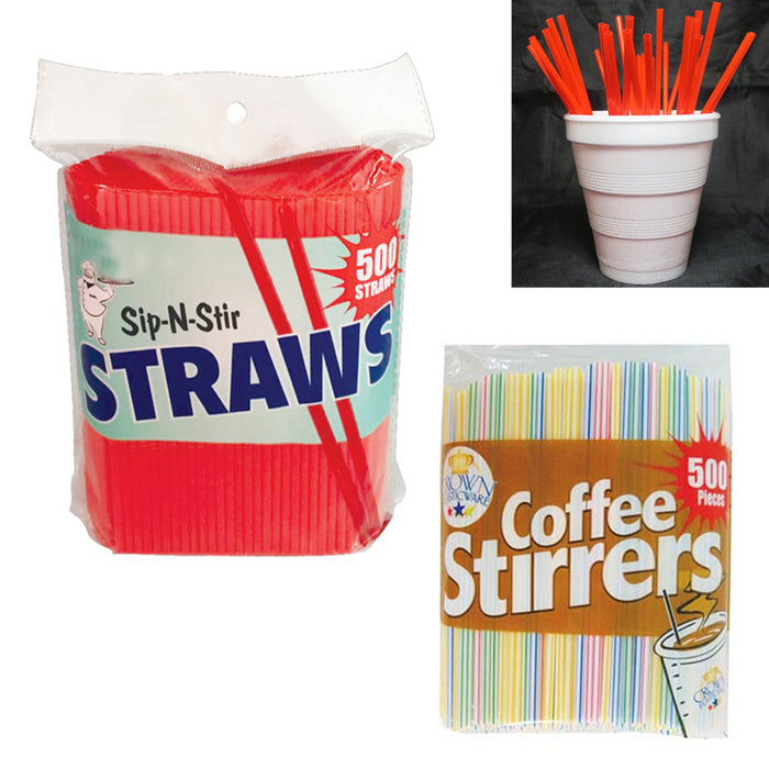 500 Set Coffee Stirrers Straws 5" Plastic Drink Stir Sticks Cocktail Bar Sip Mix