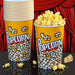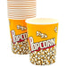 Disposable paper cups with Popcorn print has a 32 oz. capacity, and is suitable for serving popcorn, snacks, and other dry food items.