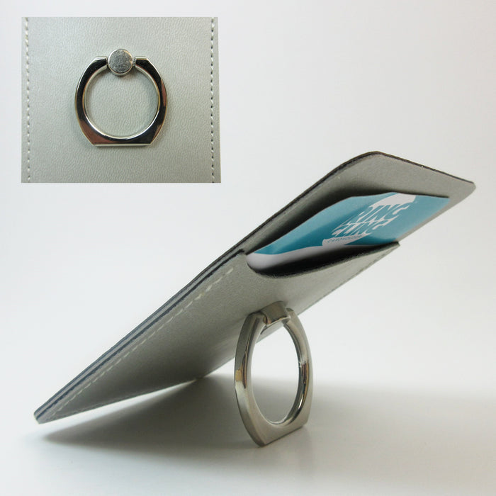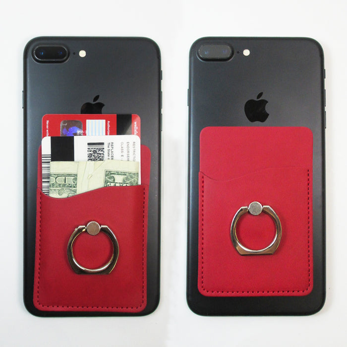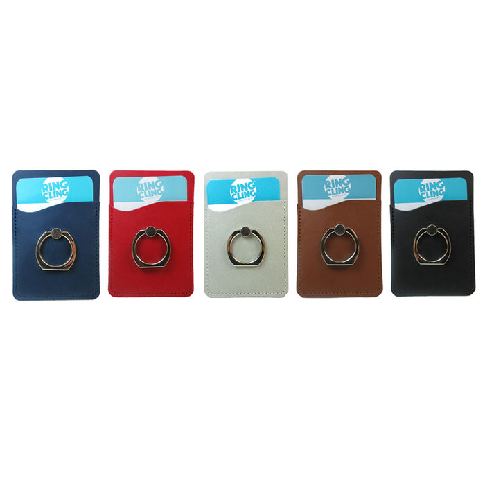 Lot of 5 ring cling cardholders sophisticated, durable stitiching in five classic colors: Black, Red, Light Grey, Navy Blue, and Light Brown (Mocha). You will be receiving one of each.