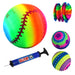 Each ball features a bold neon rainbow design with random sport prints (soccer, baseball, or volleyball), making them fun and exciting for group games and outdoor activities.