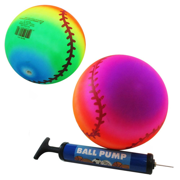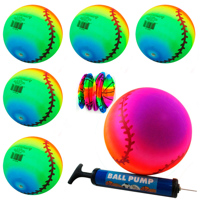 6 Pack Rainbow Inflatable PVC Balls 9" with Free Pump Beach Pool Party Outdoor Play Sports Balls Kids & Adults