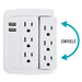 6 Outlet Wall Tap Adapter 3 Swivel AC Sockets 2 USB Charging Ports Surge Protect