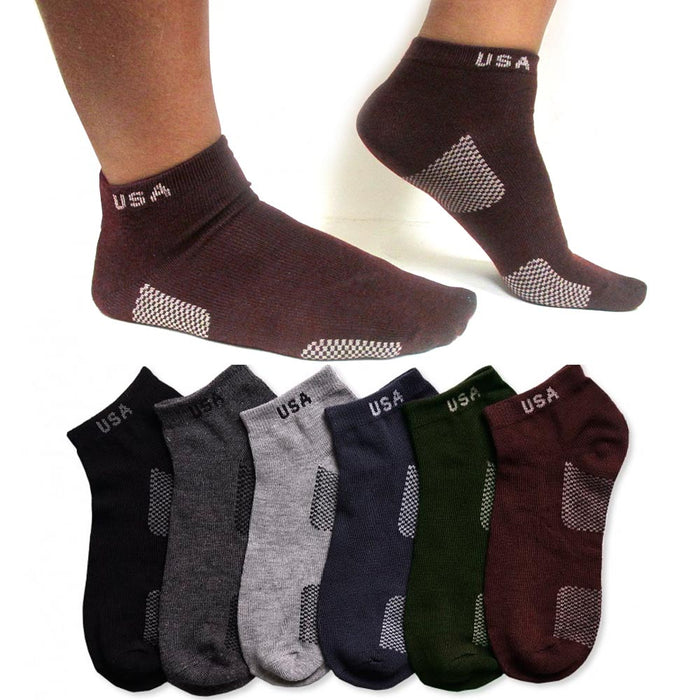 6 Pair Usa Logo Ankle Socks Low Cut Fit Crew Size 9-11 Sports Unisex Casual