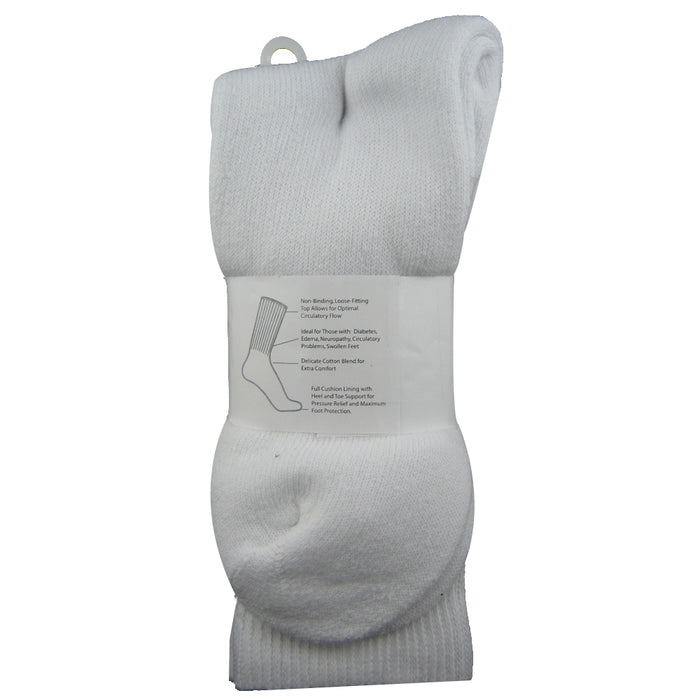 The 3 pairs of white unisex circulation diabetic crew socks are made for those who suffer from diabetes, edema and or swollen feet.