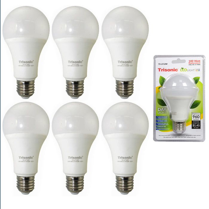 6 Pc Daylight 12 Watt Energy LED Light Bulb 100 W Output Replacement 960 Lumens