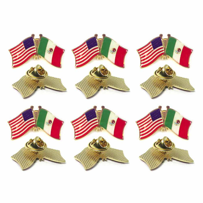 6 Pc Mexico USA Crossed Friendship Flag Lapel Pin Support Patriotic Enamel Badge