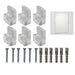 Kit includes: 6 clear plastic clips/brackets, 6 screws and 6 screw anchors.