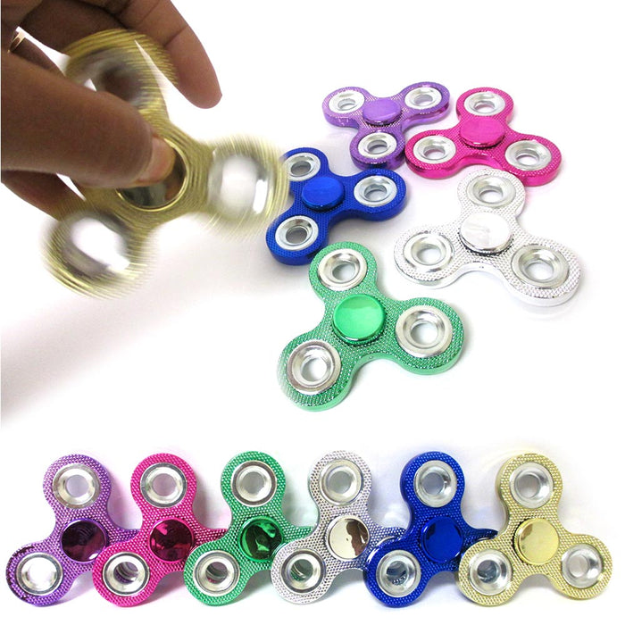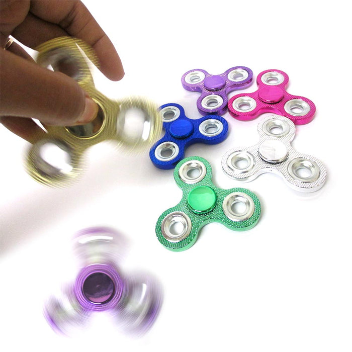 6 Fidget Spinner Tri-Spinner Gyro Toy Bling Metallic EDC Hand Finger Focus ADHD