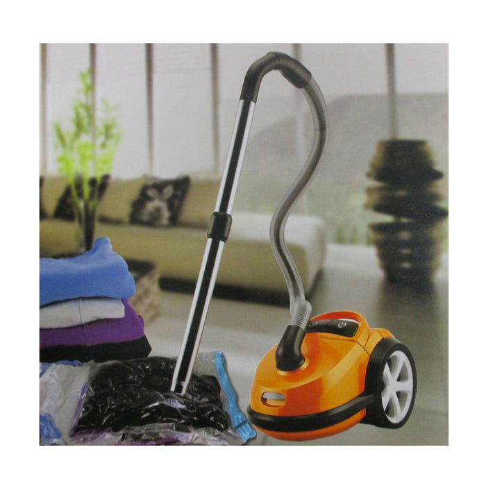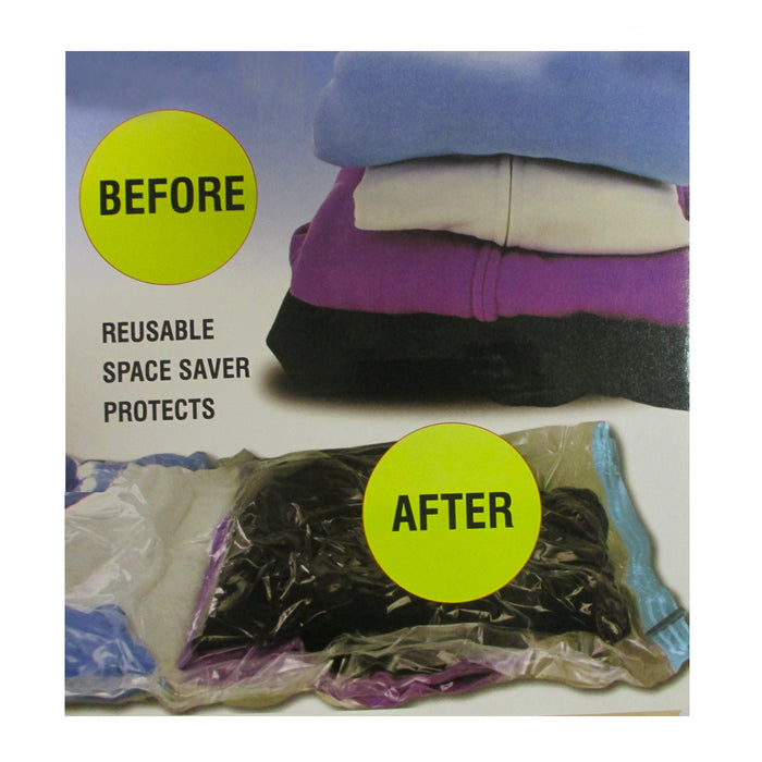 Works with any household vacuum cleaner with a hose attachment, or simple hand air sucking pump. Not only that but your clothes will remain fresh throughout storage.