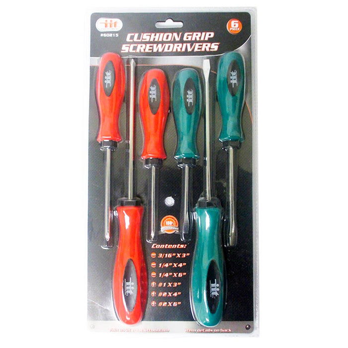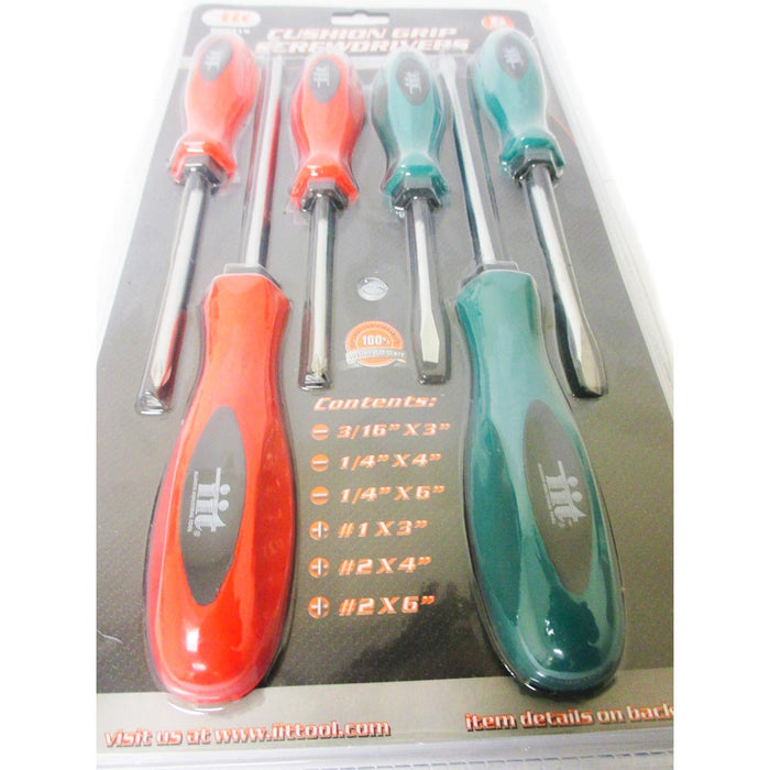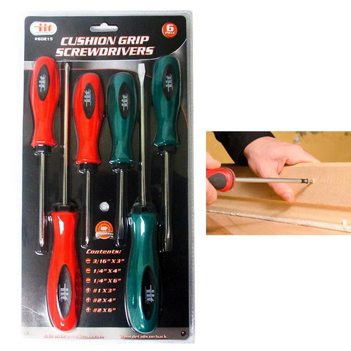 6 Pc Cushion Grip Screwdrivers Set Flat Head Phillips Tool Carbon Steel Blades