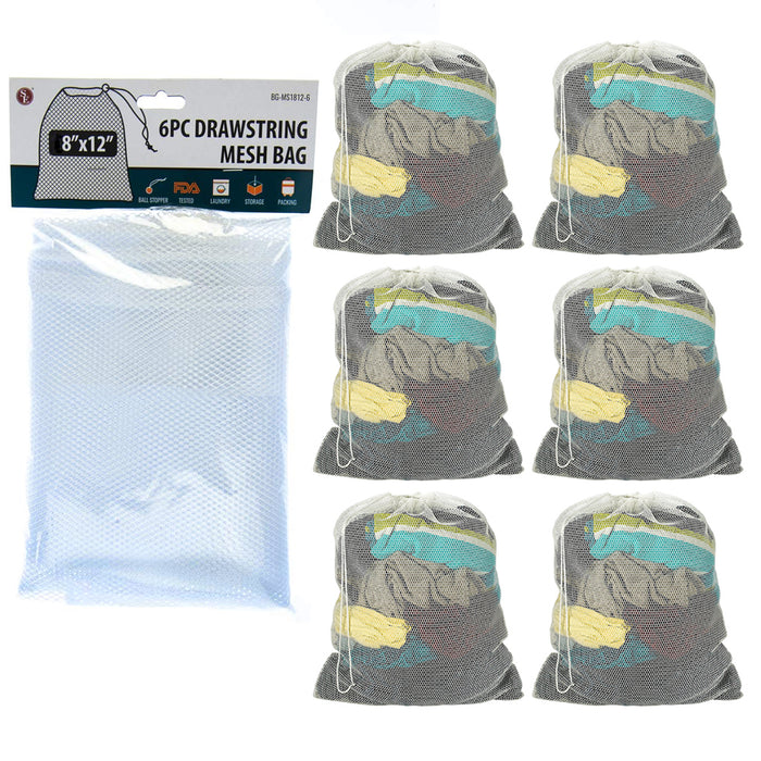 6 X Drawstring Mesh Laundry Bag Storage Wash Clothes Hamper Heavy Duty 8" X 12"