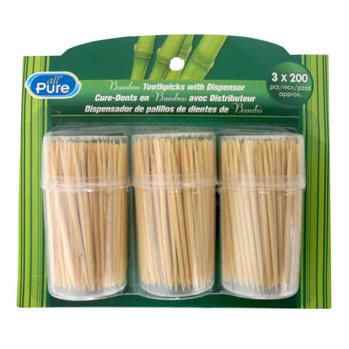 This is a brand new set of 600 wooden round toothpicks in total sold as a set of 4 separate containers each holding 150 toothpicks.