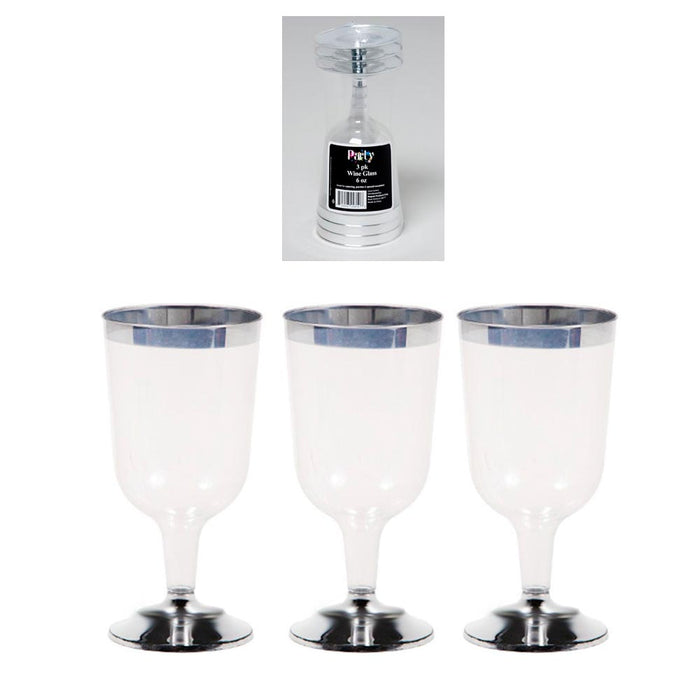 6pc Plastic Champagne Wine Flute Disposable Glasses 6oz Wedding Party Silver New