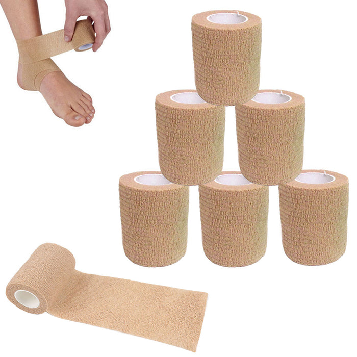 6Pc Self Adhering Bandages Stretch Wrap Sports Tape Support 3in x 2yd First Aid
