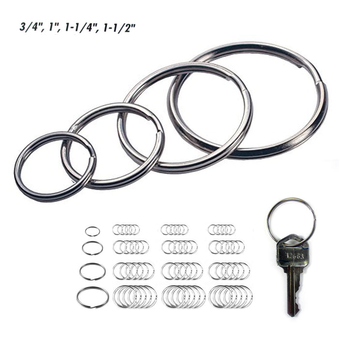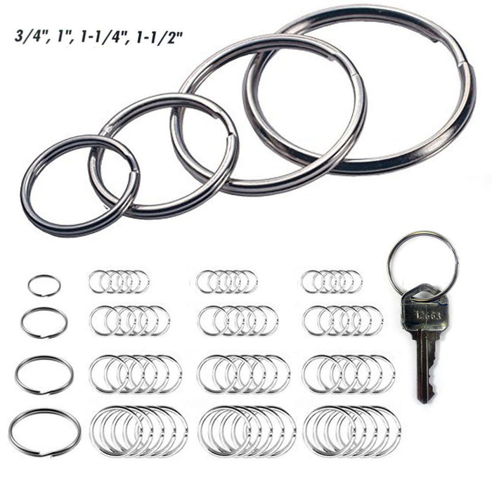 72 Pc Split Key Rings Assorted Sizes Nickel Plated Tempered Steel Chain Keyrigns !! >br>