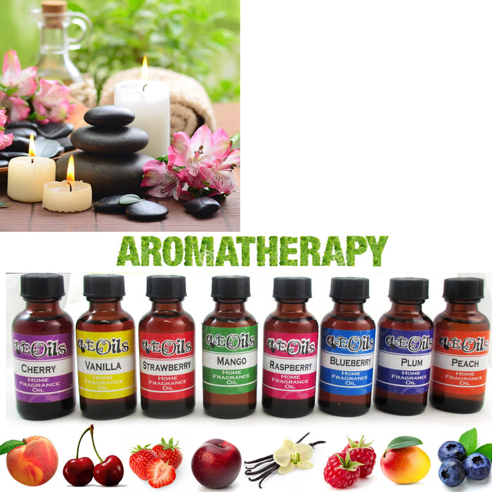 8 Bottle Set Of Fruit Aroma Therapy Oils Home Fragrance Spa Diffuser Burner Air Purifier 30 ML Each Bottle 1 Oz