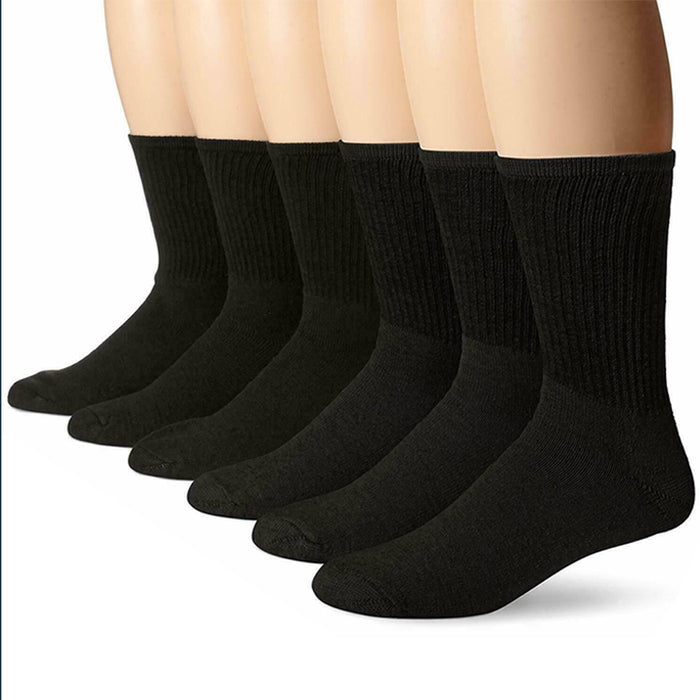 8 Pairs Black Cotton Mens Crew Sport Old School Tube Socks Calf Cushioned Size 10-13