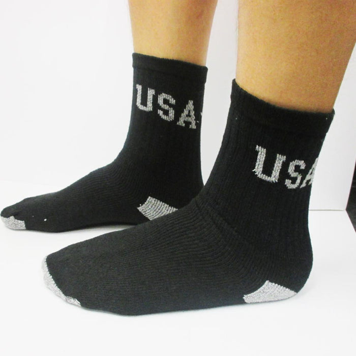 8 Pairs Classic USA Crew Men Solid Sports Socks Cotton 10-13 Black Athletic Tube