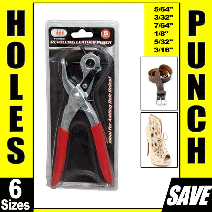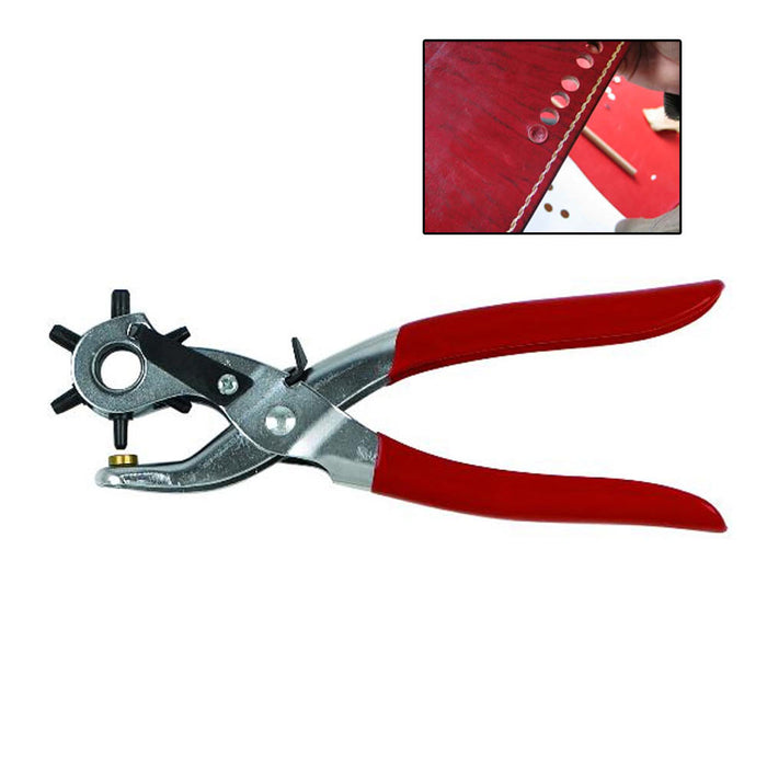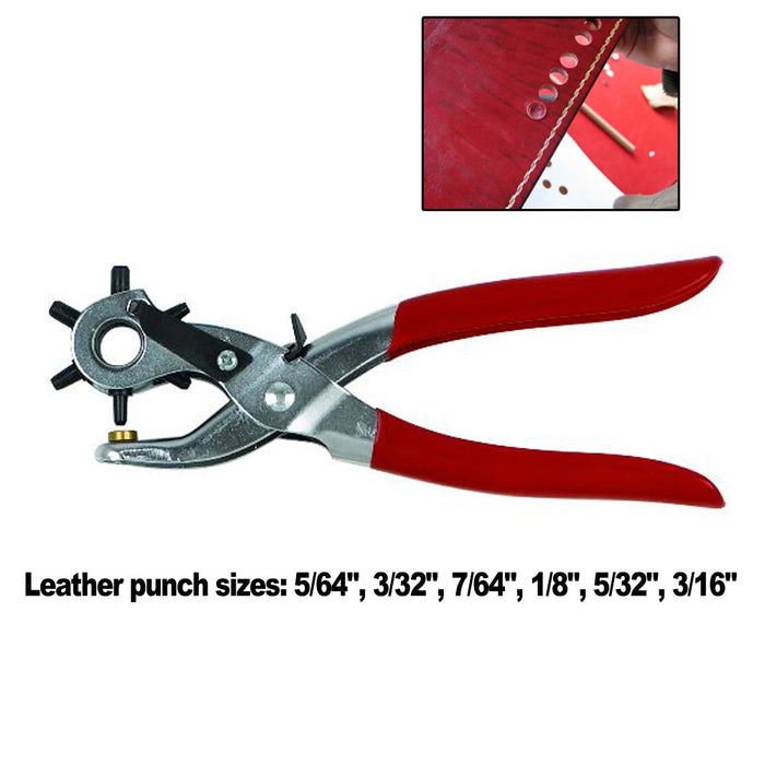 9" Rubber Gripped Carbon Steel 6 Size Revolving Leather Hole Punch Tool w/ Brass