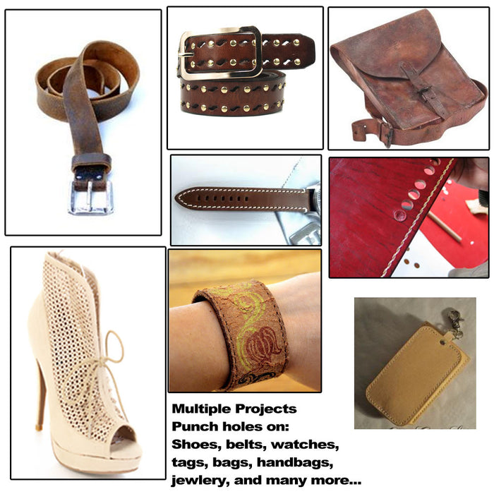 Leather punch sizes: 5/64", 3/32", 7/64", 1/8", 5/32", 3/16"