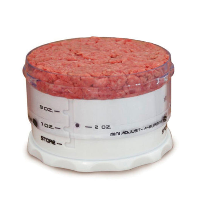The kitchen art adjust a burger shapes and measures ingredients into 1, 2, or 3 oz 3" D slider size patties. Quick and easy, the adjust a burger measures your ground meat into perfectly shaped patties.