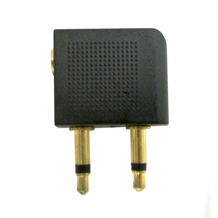 Airline headphone adapters convert a standard airline dual-prong jack to fit a standard stereo headphone plug 1/8" (3.5mm).