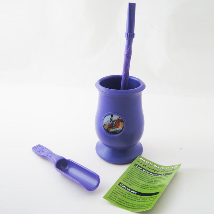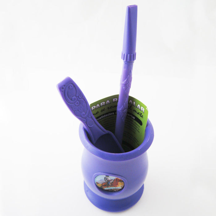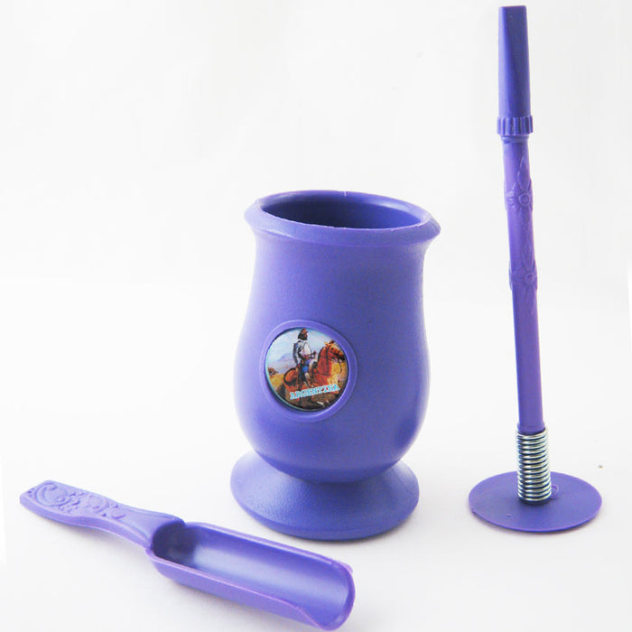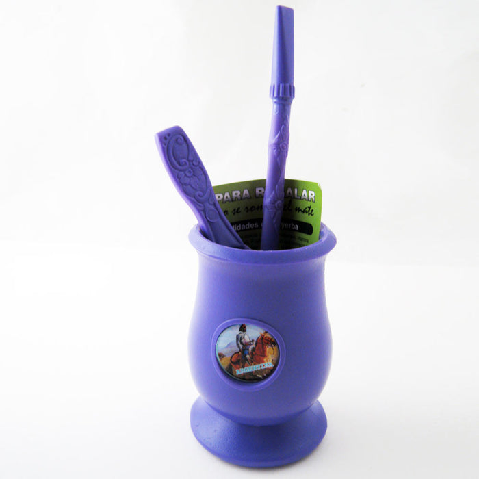 ARGENTINA MATE GOURD YERBA PLASTIC TEA CUP WITH STRAW BOMBILLA KIT GIFT 9334 PUR