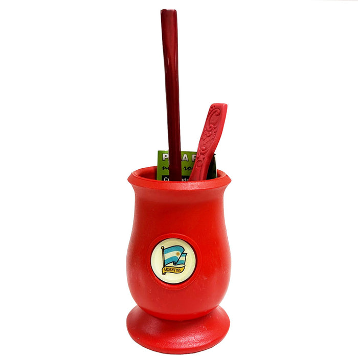 Argentina Innovative Mate Gourd Plastic Cup Straw Bombilla Set Self Clean Red!