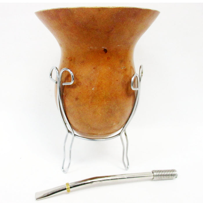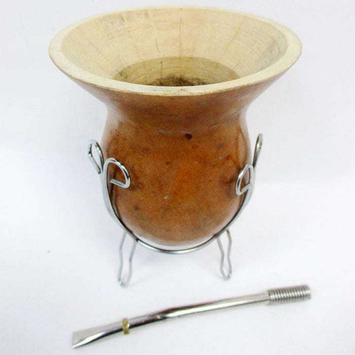 Argentina Mate Gourd Yerba Tea Cup With Metal Straw Bombilla Set Handmade 4853 !