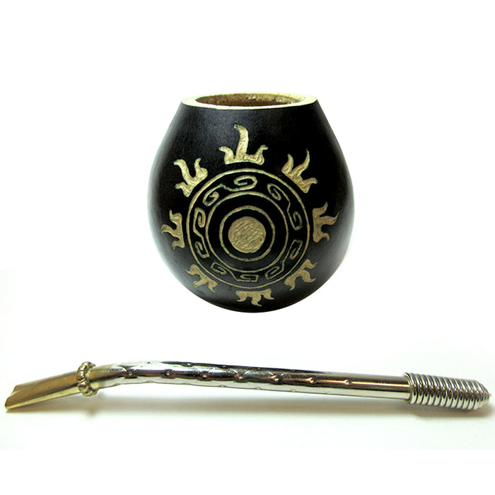 Traditional Gourd Mate Hand Engraved Argentina Handmade Straw Drink Set Bombilla Handcraft 5720