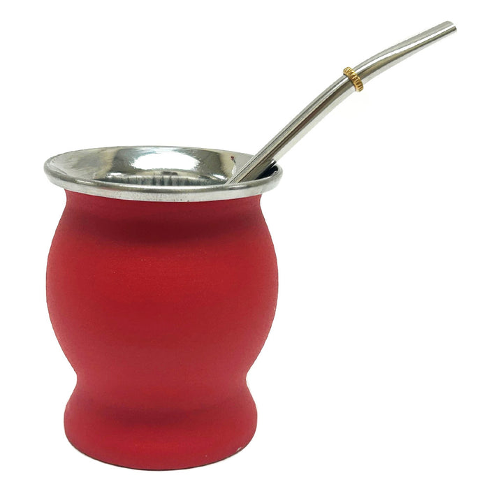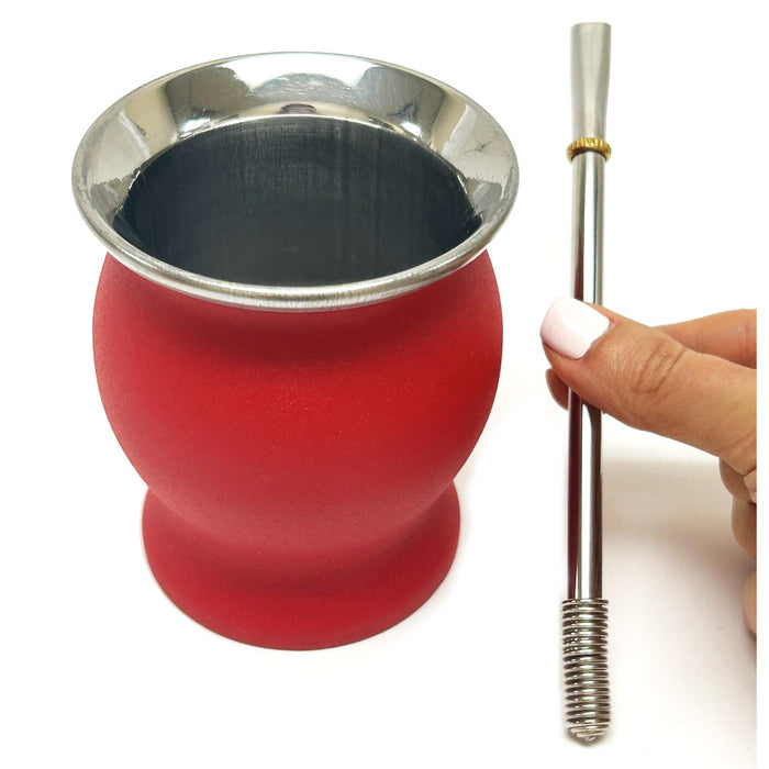 Argentina Yerba Mate Gourd Tea Cup Bombilla Straw Stainless Steel Double Wall Red