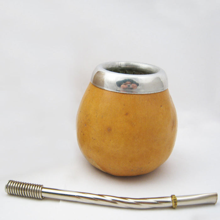 Argentina Yerba Mate Tea Gourd Cup Artisan + Straw Bombilla + 6 Oz Leaf Bag Kit