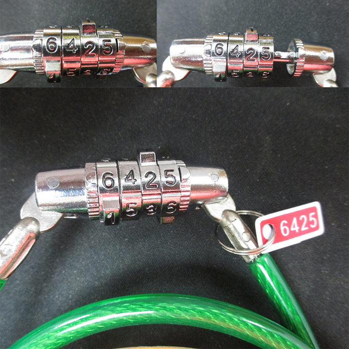 Bicycle Lock Cable Bike Flexible Four Digit Combination Security Wire Gn Rd Bl