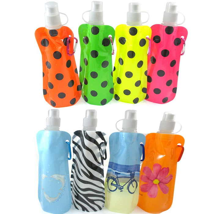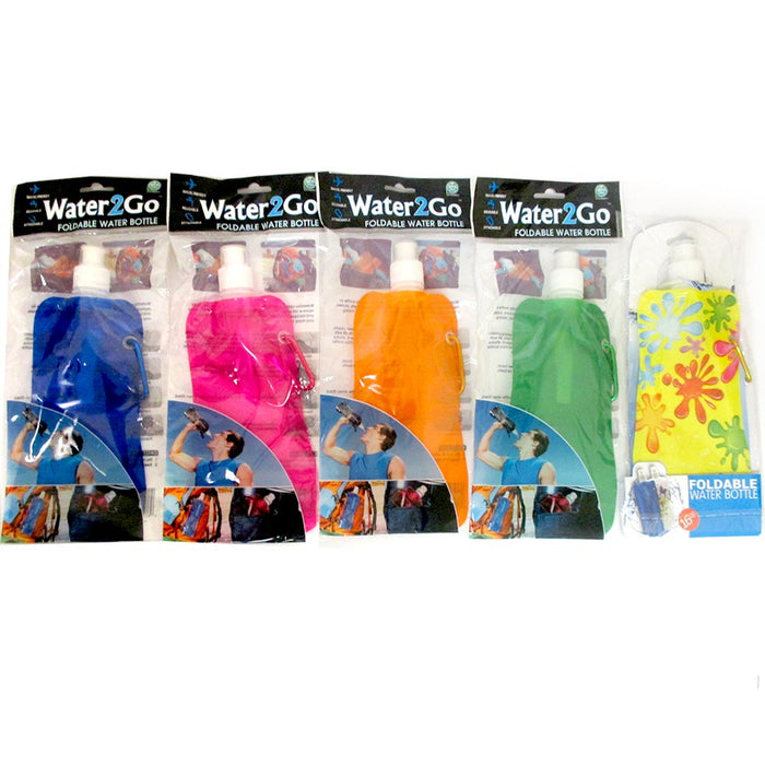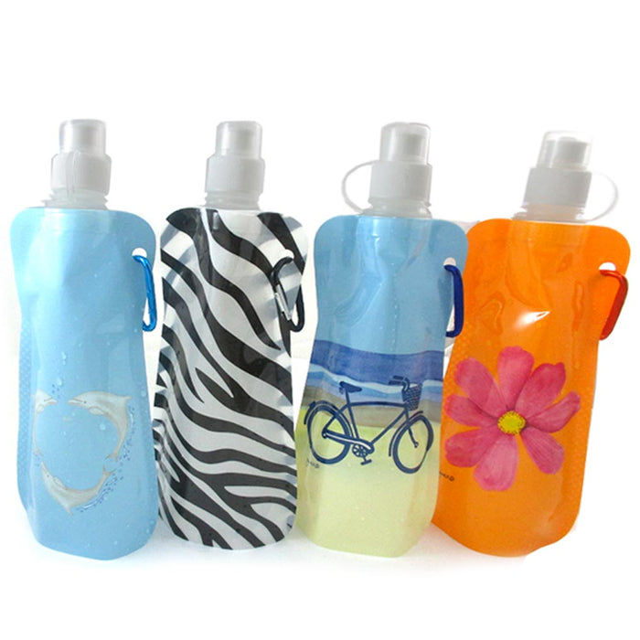 1 Folding Water Bottle Collapsible Foldable Carabiner Reusable Camping BPA Free