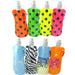 • Bottles are available in 16 assorted styles; zebra print, galaxy, solid red, football, palm tree sunset, palm tree beach day, baseball, cheetah print, color splashes, red bird image, flaming guitar, parrot image, hummingbird image, penguin family image, dark purple leaf vine print, and black with a pink stripe.