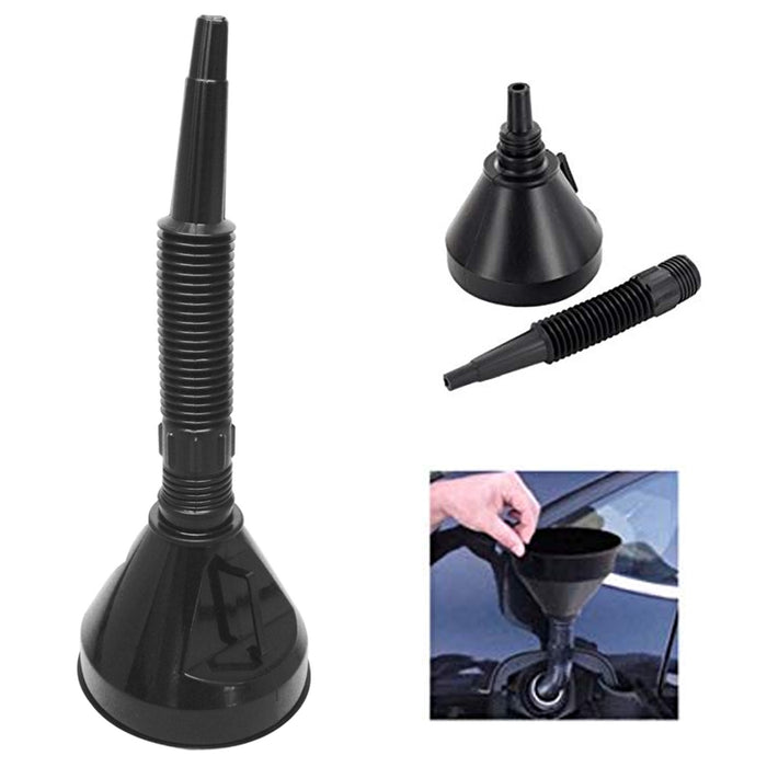 Car Auto Black Plastic Flexible Spout Filter Gas Oil Water Fuel Funnel Transfer