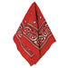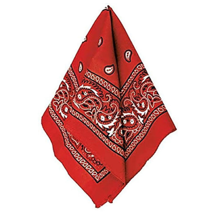 This fun old red western bandanna measures 21 5/16” W x 21 5/16” H. Reusable multipurpose red bandanna is perfect for any special occasion, party or events to complete a costume or get up and most especially for everyday use.